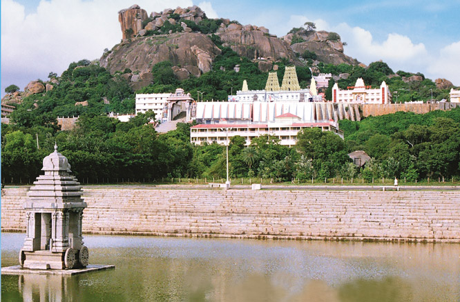 Shree Adichunchanagiri which is located alongside the Nagamangala-Tumkur Road in Nagamangala Taluk of Mandya district is a holy place which is nestled in a hilly area in the lap of Mother Nature. The Chunchanagiri stands apart in the hilly range stretching all along from the South towards the North.The rich flora and fauna and the bio-diversity of the region is just mesmerizing. The coconut groves that seems to be stretching towards infinity, the large lakes with their crystal clear water, the thousands of peacocks which dance with merriment when the rays of the sun kiss them, all add to the charm of this beautiful landscape. There are also a number of caves, Mutts and Mantas around this place. Legend has it that several sages sat on penance in the caves and mantaps here and have attained enlightenment.