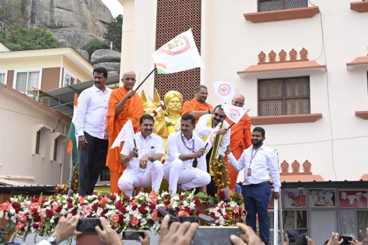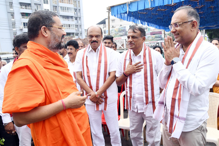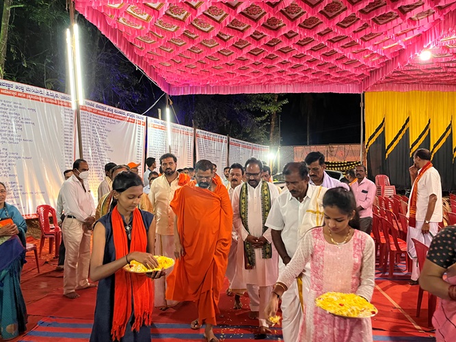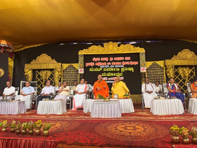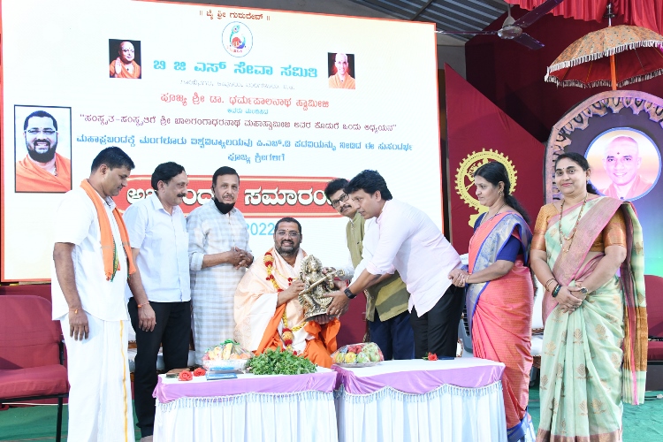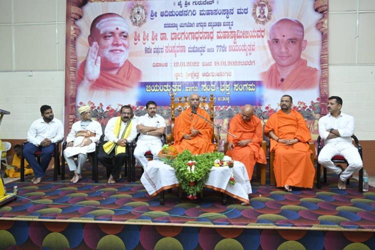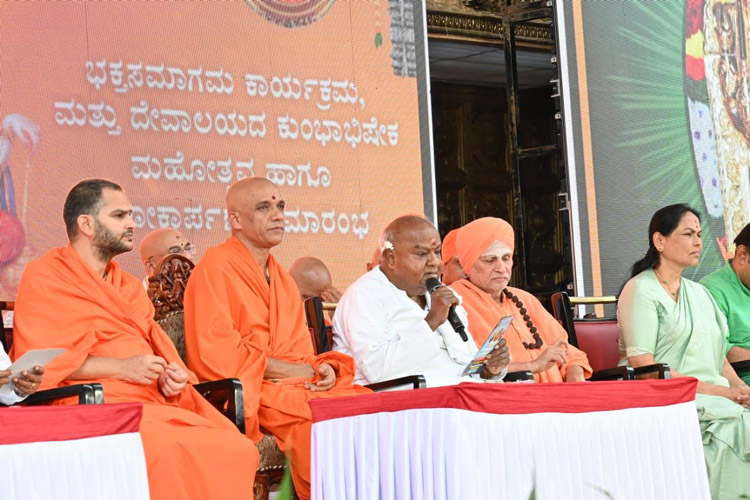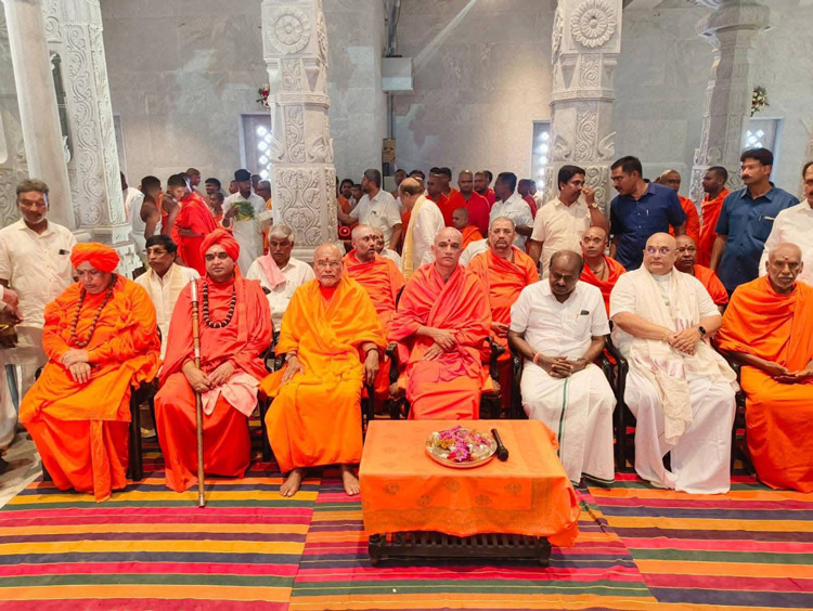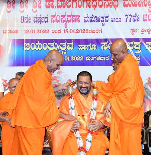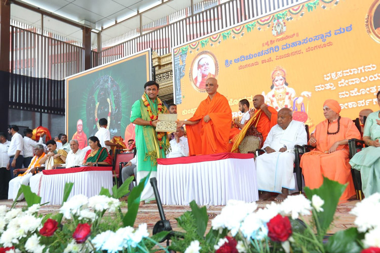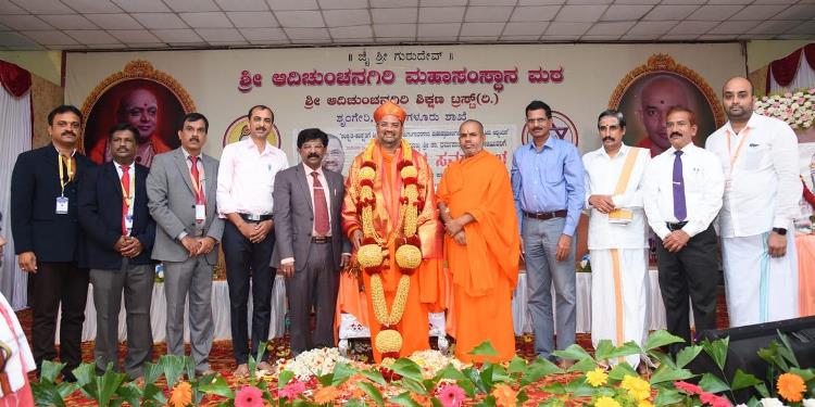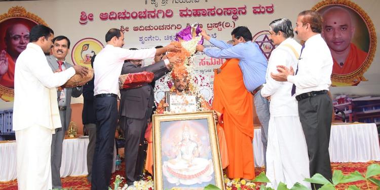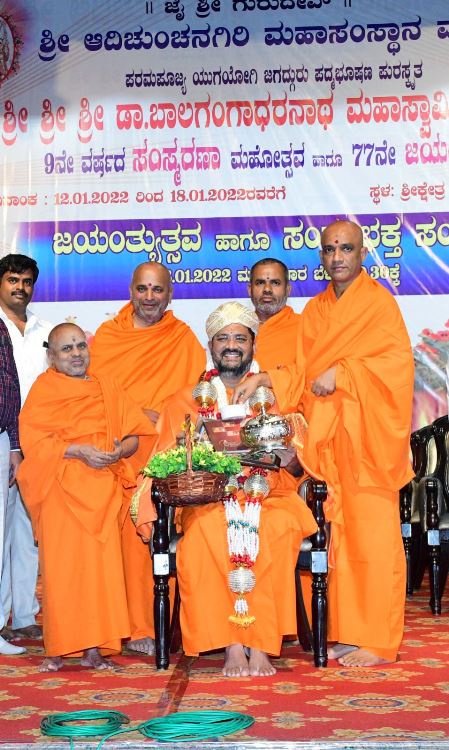 ಶ್ರೀ ಆದಿಚುಂಚನಗಿರಿ ಶಾಖಾ ಮಠಗಳ ಪೂಜ್ಯ ಸ್ವಾಮೀಜಿಗಳವರು, ಕೇಂದ್ರ ಸಚಿವರಾದ ಶ್ರೀ ಎಚ್ ಡಿ ಕುಮಾರಸ್ವಾಮಿ ಅವರು, ಉಪಮುಖ್ಯಮಂತ್ರಿಗಳಾದ ಶ್ರೀ ಡಿ ಕೆ ಶಿವಕುಮಾರ್ ಅವರು, ಸಚಿವರಾದ ಶ್ರೀ ಚಲುವರಾಯಸ್ವಾಮಿ ಅವರು, ಮಾಜಿ ಸಿಎಂ ಶ್ರೀ ಡಿ.ವಿ. ಸದಾನಂದಗೌಡರು, ಪ್ರತಿಪಕ್ಷ ನಾಯಕ ಶ್ರೀ ಆರ್. ಅಶೋಕ್ ಅವರು, ಮಾಜಿ ಸಚಿವರಾದ ಡಾ.ಅಶ್ವತ್ ನಾರಾಯಣ್ ಅವರು, ಜೆಡಿಎಸ್ ಯುವಘಟಕದ ರಾಜ್ಯಾಧ್ಯಕ್ಷ ನಿಖಿಲ್ಕುಮಾರಸ್ವಾಮಿ ಸೇರಿದಂತೆ ಹಲವು ಗಣ್ಯರು ಪಾಲ್ಗೊಂಡಿದ್ದರು. ಸಮುದಾಯದ ಸಚಿವರು, ಶಾಸಕರು, ವಿಧಾನ ಪರಿಷತ್ ಸದಸ್ಯರು, ಗಣ್ಯರು ಉಪಸ್ಥಿತರಿದ್ದರು.ದಿನಾಂಕ 16.04.2025ನೇ ಬುಧವಾರ ಬೆಳಿಗ್ಗೆ 11:30 ಗಂಟೆಗೆ ಶ್ರೀ ಆದಿಚುಂಚನಗಿರಿ ಮಹಾಸಂಸ್ಥಾನ ಮಠವು ಬೆಂಗಳೂರಿನ ಮಹಾಲಕ್ಷ್ಮಿ ಬಡಾವಣೆಯಲ್ಲಿ ನೂತನವಾಗಿ ನಿರ್ಮಿಸಿರುವ ಶ್ರೀ ಅಭಯಾಂಜನೇಯಸ್ವಾಮಿ, ಶ್ರೀ ಪ್ರಸನ್ನ ಮಹಾಗಣಪತಿ ಮತ್ತು ಶ್ರೀ ಮಾತಾ ಲಲಿತಾಂಬಿಕಾ ದೇವಾಲಯದ ಕುಂಭಾಭಿಷೇಕ ಮಹೋತ್ಸವ ಲೋಕಾರ್ಪಣೆ ಮತ್ತು ಭಕ್ತಸಮಾಗಮ ಸ್ವಸ್ಥಿ ವಿದ್ಯಾರ್ಥಿನಿ ನಿಲಯದ ಉದ್ಘಾಟನೆ ಸಮಾರಂಭದಲ್ಲಿ *ಪರಮಪೂಜ್ಯ ಮಹಾಸ್ವಾಮೀಜಿಯವರು* ದಿವ್ಯಸಾನ್ನಿಧ್ಯ ವಹಿಸಿ ಆಶೀರ್ವಚನ ನೀಡಿದರು. ಸಮಾರಂಭದಲ್ಲಿ ಶ್ರೀ ಆದಿಚುಂಚನಗಿರಿ ಶಾಖಾ ಮಠಗಳ ಸ್ವಾಮೀಜಿಗಳವರು, *ಸನ್ಮಾನ್ಯ ಶ್ರೀ ಹೆಚ್. ಡಿ. ದೇವೇಗೌಡರು ಮಾಜಿ ಪ್ರಧಾನಮಂತ್ರಿಗಳು*, ಪರಮಪೂಜ್ಯ ಜಗದ್ಗುರು ಶ್ರೀ ಶ್ರೀ ಶ್ರೀ ಡಾ.ನಂಜಾವಧೂತ ಮಹಾಸ್ವಾಮೀಜಿರವರು ಪೀಠಾಧ್ಯಕ್ಷರು, ಸ್ಪಟಿಕಪುರಿ ಮಹಾಸಂಸ್ಥಾನ ಮಠ, ಪಟ್ಟನಾಯಕನಹಳ್ಳಿ, ಪರಮಪೂಜ್ಯ ಶ್ರೀ ಶ್ರೀ ಶ್ರೀ ಶಿವರುದ್ರ ಮಹಾಸ್ವಾಮೀಜಿರವರು, ಬೇಲಿಮಠ ಮಹಾಸಂಸ್ಥಾನ, ಸನ್ಮಾನ್ಯ ಕುಮಾರಿ ಶೋಭ ಕರಂದ್ಲಾಜೆರವರು, ಸಚಿವರು, ಕೃಷಿ ಮತ್ತು ರೈತ ಕಲ್ಯಾಣ ಇಲಾಖೆ, ಭಾರತ ಸರ್ಕಾರ, ಸನ್ಮಾನ್ಯ ಶ್ರೀ ವಿ. ಸೋಮಣ್ಣರವರು ಕೇಂದ್ರ ಜಲಶಕ್ತಿ ಹಾಗೂ ರೈಲ್ವೆ ಖಾತೆಗಳ ರಾಜ್ಯ ಸಚಿವರು, ಭಾರತ ಸರ್ಕಾರ, ಸನ್ಮಾನ್ಯ ಡಾ.ಕೆ ಸುಧಾಕರ್ ರವರು, ಲೋಕಸಭಾ ಸದಸ್ಯರು, ಚಿಕ್ಕಬಳ್ಳಾಪುರ, ಸನ್ಮಾನ್ಯ ಶ್ರೀ ಸಿ.ಎನ್ ಅಶ್ವತ್ ನಾರಾಯಣರವರು ಮಾಜಿ ಉಪಮುಖ್ಯಮಂತ್ರಿಗಳು ಶಾಸಕರು, ಮಲ್ಲೇಶ್ವರಂ ವಿಧಾನಸಭಾ ಕ್ಷೇತ್ರ, ಸನ್ಮಾನ್ಯ ಶ್ರೀ ಕೆ. ಗೋಪಾಲಯ್ಯರವರು ಮಾಜಿ ಸಚಿವರು, ಹಾಲಿ ಶಾಸಕರು, ಮಹಾಲಕ್ಷ್ಮಿ ಪುರಂ, ಸನ್ಮಾನ್ಯ ಶ್ರೀ ವಿಶ್ವನಾಥ್ ಅವರು ಯಲಹಂಕ ವಿಧಾನಸಭಾ ಕ್ಷೇತ್ರ, ಗಣ್ಯರು ಹಾಗೂ ಶ್ರೀ ಮಠದ ಸದ್ಭಕ್ತರು ಉಪಸ್ಥಿತರಿದ್ದರು.