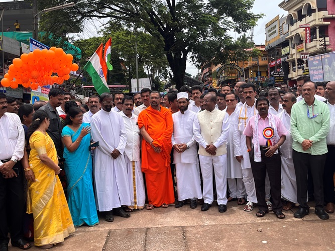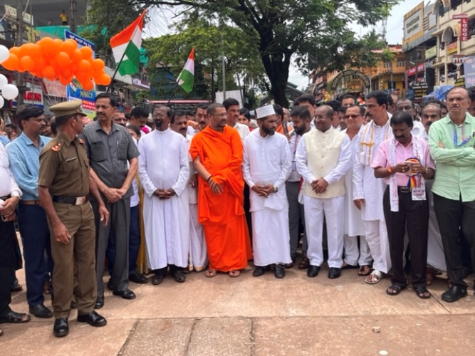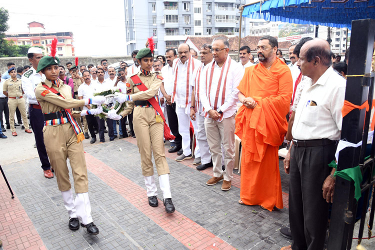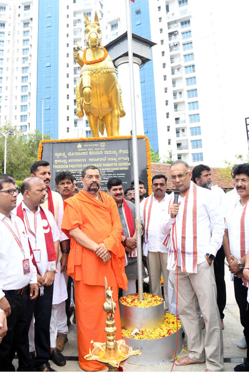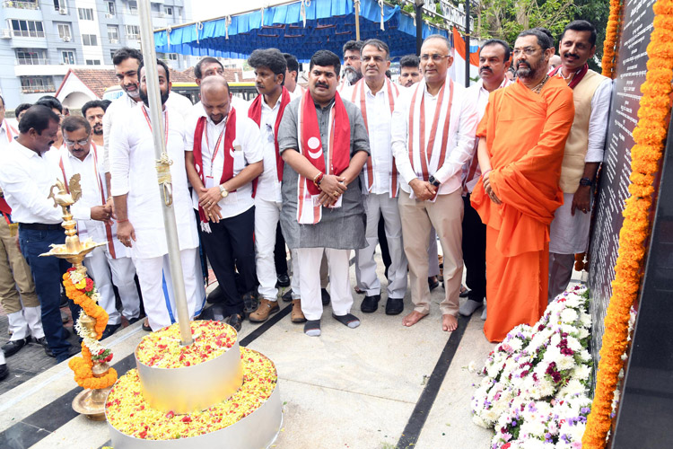 ಮಂಗಳೂರಿನ ಬಾವುಟಗಡ್ಡೆಯಲ್ಲಿ ಇರುವ ಕೆದಂಬಾಡಿ ರಾಮಯ್ಯ ಗೌಡರ ಪ್ರತಿಮೆಯ ಮುಂಭಾಗದಲ್ಲಿ ಹುತಾತ್ಮರಿಗೆ ಗೌರವ ಸಲ್ಲಿಸುವ ಕಾರ್ಯಕ್ರಮದಲ್ಲಿ ಶ್ರೀ ಆದಿಚುಂಚನಗಿರಿ ಮಂಗಳೂರುಶಾಖಾ ಮಠದ ಡಾ. ಶ್ರೀ ಧರ್ಮಪಾಲನಾಥ ಸ್ವಾಮೀಜಿ ಹಾಗೂ ಸನ್ಮಾನ್ಯ ಜಿಲ್ಲಾ ಉಸ್ತುವಾರಿ ಸಚಿವರಾದ ಶ್ರೀ ದಿನೇಶ್ ಗುಂಡುರಾವ್ , ಶಾಸಕರಾದ ವೇದವ್ಯಾಸ ಕಾಮತ್ , ವಿಧಾನ ಪರಿಷತ್ ಸದಸ್ಯರಾದ ಮಂಜನಾಥ ಭಂಡಾರಿ ಹಾಗೂ ವಿವಿಧಸಂಘ ಸಂಸ್ಥೆಯ ಅಧ್ಯಕ್ಷರುಗಳು ರಾಷ್ಟ್ರಾಭಿಮಾನಿಗಳು ಭಾಗವಹಿಸಿದ್ದರು.