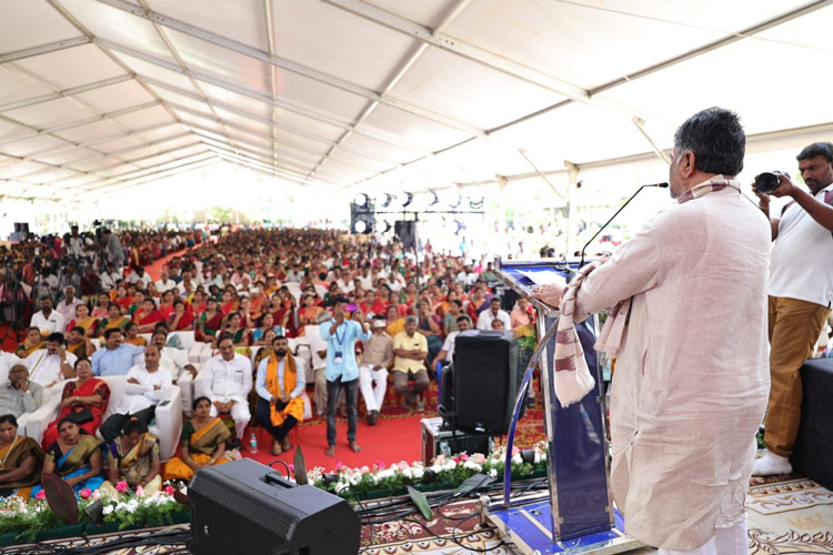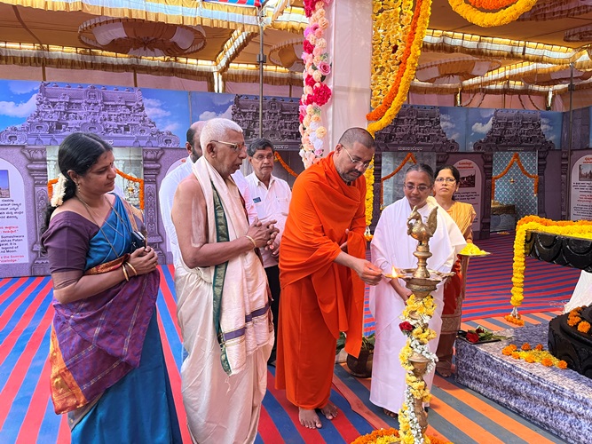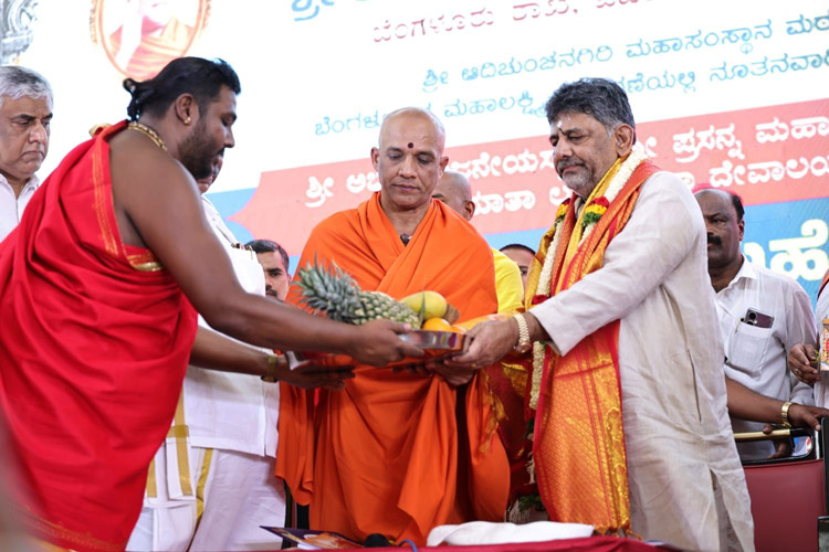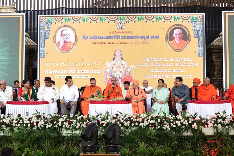 ದಿನಾಂಕ 15.04.2025ನೇ ಮಂಗಳವಾರ ಬೆಳಿಗ್ಗೆ 11:30 ಗಂಟೆಗೆ ಶ್ರೀ ಆದಿಚುಂಚನಗಿರಿ ಮಹಾಸಂಸ್ಥಾನ ಮಠವು ಬೆಂಗಳೂರಿನ ಮಹಾಲಕ್ಷ್ಮಿ ಬಡಾವಣೆಯಲ್ಲಿ ನೂತನವಾಗಿ ನಿರ್ಮಿಸಿರುವ ಶ್ರೀ ಅಭಯಾಂಜನೇಯಸ್ವಾಮಿ, ಶ್ರೀ ಪ್ರಸನ್ನ ಮಹಾಗಣಪತಿ ಮತ್ತು ಶ್ರೀ ಮಾತಾ ಲಲಿತಾಂಬಿಕಾ ದೇವಾಲಯದ ಕುಂಭಾಭಿಷೇಕ ಮಹೋತ್ಸವ ಮತ್ತು ಲೋಕಾರ್ಪಣಾ ಸಮಾರಂಭದ ಪ್ರಯುಕ್ತ ಶ್ರೀ ಮಾತಾ ಲಲಿತ ಸಹಸ್ರನಾಮ ಪಾರಾಯಣ ಮತ್ತು ಸತ್ಸಂಗ ಪ್ರವಚನ ಮತ್ತು ಧಾರ್ಮಿಕ ಸಭೆಯ ಕಾರ್ಯಕ್ರಮದಲ್ಲಿ *ಪರಮಪೂಜ್ಯ ಮಹಾಸ್ವಾಮೀಜಿಯವರು* ದಿವ್ಯಸಾನ್ನಿಧ್ಯ ವಹಿಸಿ ಆಶೀರ್ವಚನ ನೀಡಿದರು. ಸಮಾರಂಭದಲ್ಲಿ ಶ್ರೀ ಆದಿಚುಂಚನಗಿರಿ ಶಾಖಾ ಮಠಗಳ ಪೂಜ್ಯ ಸ್ವಾಮೀಜಿಗಳವರು, *ಸನ್ಮಾನ್ಯ ಶ್ರೀ ಡಿ.ಕೆ. ಶಿವಕುಮಾರ್ರವರು, ಉಪಮುಖ್ಯಮಂತ್ರಿಗಳು, ಕರ್ನಾಟಕ ಸರ್ಕಾರ*, ಸನ್ಮಾನ್ಯ ಶ್ರೀ ಡಿ. ವಿ. ಸದಾನಂದಗೌಡರು ಮಾಜಿ ಮುಖ್ಯಮಂತ್ರಿಗಳು ಹಾಗೂ ಮಾಜಿ ಕೇಂದ್ರ ಸಚಿವರು, ಸನ್ಮಾನ್ಯ ಶ್ರೀ ಕೆ. ಗೋಪಾಲಯ್ಯರವರು ಮಾಜಿ ಸಚಿವರು, ಶಾಸಕರು, ಮಹಾಲಕ್ಷ್ಮಿ ಪುರಂ, ಬೆಂ., ಸನ್ಮಾನ್ಯ ಶ್ರೀಮತಿ ಹೇಮಲತಾ ಗೋಪಾಲಯ್ಯರವರು, ಮಾಜಿ ಉಪಮಹಾಪೌರರು, ಬೃಹತ್ ಬೆಂಗಳೂರು ಮಹಾನಗರ ಪಾಲಿಕೆ, ಶ್ರೀಮತಿ ಕುಸುಮಾ ಹನುಮಂತರಾಯಪ್ಪರವರು, ಗಣ್ಯರು ಹಾಗೂ ಶ್ರೀ ಮಠದ ಸದ್ಭಕ್ತರು ಉಪಸ್ಥಿತರಿದ್ದರು.