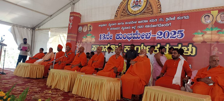 ದಿನಾಂಕ 11.02.2025ನೇ ಮಂಗಳವಾರ ಬೆಳಿಗ್ಗೆ 11:30 ಗಂಟೆಗೆ *ಮೈಸೂರು ಜಿಲ್ಲೆ, ಟಿ ನರಸೀಪುರದ ತ್ರಿವೇಣಿ ಸಂಗಮದಲ್ಲಿ 13 ನೇ ಕುಂಭಮೇಳ -2025* ರ ಸಮಾರಂಭದಲ್ಲಿ *ಪರಮಪೂಜ್ಯ ಮಹಾಸ್ವಾಮೀಜಿಯವರು* ದಿವ್ಯ ಸಾನಿಧ್ಯ ವಹಿಸಿ ಆಶೀರ್ವಚನ ನೀಡಿದರು.