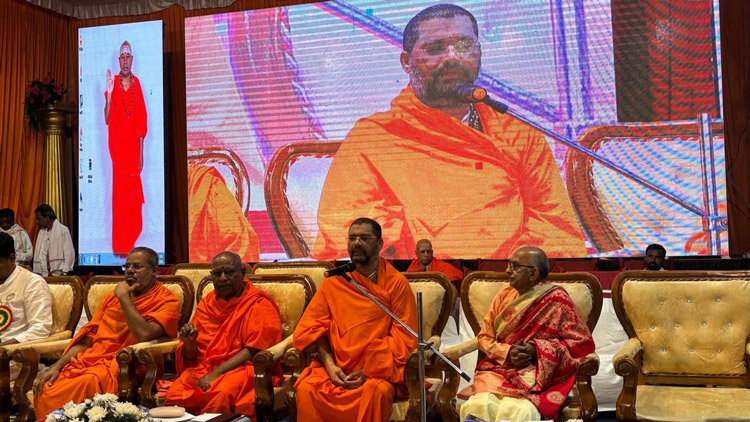 ದಿನಾಂಕ 20.02.2025 ಗುರುವಾರ ಬೆಳಿಗ್ಗೆ 10:30 ಗಂಟೆಗೆ ಶ್ರೀ ಕ್ಷೇತ್ರ ಆದಿಚುಂಚನಗಿರಿ ಮಹಾಸಂಸ್ಥಾನ ಮಠದ ಬಿಜಿಎಸ್ ಸಭಾಂಗಣದಲ್ಲಿ ಆಯೋಜಿಸಲಾಗಿದ್ದ *ಪರಮಪೂಜ್ಯ ಜಗದ್ಗುರುಗಳ 12ನೇ ವರ್ಷದ ಪಟ್ಟಾಭಿಷೇಕ ಮಹೋತ್ಸವ ಮತ್ತು ವಿಜ್ಞಾತಂ ಪ್ರಶಸ್ತಿ ಪ್ರದಾನ ಕಾರ್ಯಕ್ರಮ* ದಲ್ಲಿ ಶ್ರೀ ಆದಿಚುಂಚನಗಿರಿ ಮಹಾಸಂಸ್ಥಾನ ಮಠದ *ಪೀಠಾಧ್ಯಕ್ಷರಾದ ಪರಮಪೂಜ್ಯ ಜಗದ್ಗುರು ಶ್ರೀ ಶ್ರೀ ಶ್ರೀ ಡಾ.ನಿರ್ಮಲಾನಂದನಾಥ ಮಹಾಸ್ವಾಮೀಜಿಯವರು* ದಿವ್ಯಸಾನ್ನಿಧ್ಯ ವಹಿಸಿ ಆಶೀರ್ವಚನ ನೀಡಿದರು. ಈ ಕಾರ್ಯಕ್ರಮದಲ್ಲಿ *ವಿಜ್ಞಾತಂ ಪ್ರಶಸ್ತಿ ಪುರಸ್ಕೃತರಾದ ಆಚಾರ್ಯ ಮಹಾಮಂಡಲೇಶ್ವರ ಜುನಾ ಅಖಾಡ ಹರಿಹರ ಆಶ್ರಮ ಹರಿದ್ವಾರ, ಹಿಂದೂ ಧರ್ಮ ಆಚಾರ್ಯ ಸಭಾ ಅಧ್ಯಕ್ಷರಾದ *ಪರಮಪೂಜ್ಯ ಶ್ರೀ ಸ್ವಾಮಿ ಅವಧೇಶಾನಂದ ಗಿರಿ ಮಹಾರಾಜ್ ಅವರು,* ಗುಜರಾತ್ ರಾಜ್ ಕೋಟ್, ವಡೋದರ್ ಅರ್ಹ ವಿದ್ಯಾ ಮಂದಿರದ ಅಧ್ಯಕ್ಷರಾದ *ಪರಮಪೂಜ್ಯ ಶ್ರೀ ಸ್ವಾಮಿ ಪರಮಾತ್ಮಾನಂದ ಸರಸ್ವತಿ ಜೀ ಯವರು,* ಶ್ರೀ ರಾಮಕೃಷ್ಣ ಆಶ್ರಮದ ಅಧ್ಯಕ್ಷರಾದ *ಪರಮಪೂಜ್ಯ ಶ್ರೀ ಸ್ವಾಮಿ ಮುಕ್ತಿದಾನಂದಜೀ ಮಹಾರಾಜ್ ಯವರು,* ಶ್ರೀ ಆದಿಚುಂಚನಗಿರಿ ಮಹಾಸಂಸ್ಥಾನ ಮಠದ ಎಲ್ಲಾ ಶಾಖೆಯ ಪೂಜ್ಯ ಸ್ವಾಮೀಜಿಗಳವರು, ಮತ್ತು ವಿರೋಧ ಪಕ್ಷದ ನಾಯಕರಾದ * ಶ್ರೀ ಆರ್.ಅಶೋಕ್ ಅವರು,* ಚಿಕ್ಕಬಳ್ಳಾಪುರ ಜಿಲ್ಲೆಯ ಸಂಸದರಾದ *ಡಾ.ಕೆ.ಸುಧಾಕರ್ ಅವರು,* ಹೊಸಕೋಟೆ ವಿಧಾನಸಭಾ ಕ್ಷೇತ್ರದ ಶಾಸಕರಾದ * ಶ್ರೀ ಶರತ್ ಬಚ್ಚೇಗೌಡ ಅವರು,* ಗಣ್ಯರು, ಸಿಬ್ಬಂದಿ ವರ್ಗದವರು, ವಿದ್ಯಾರ್ಥಿಗಳು, ಶ್ರೀಮಠದ ಸದ್ಭಕ್ತರು ಉಪಸ್ಥಿತರಿದ್ದರು.