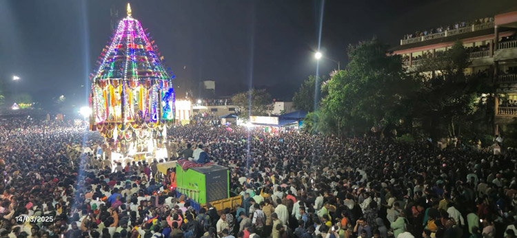 ದಿನಾಂಕ 14.03.2025 ಶುಕ್ರವಾರ ಬೆಳಿಗ್ಗೆ 4:00 ಗಂಟೆಗೆ ಬ್ರಾಹ್ಮೀ ಮುಹೂರ್ತದಲ್ಲಿ ಶ್ರೀ *ಗಂಗಾಧರೇಶ್ವರಸ್ವಾಮಿ ಮಹಾರಥೋತ್ಸವ ಹಾಗೂ ಪರಮಪೂಜ್ಯ ಜಗದ್ಗುರು ಶ್ರೀ ಶ್ರೀ ಶ್ರೀ ಡಾ. ನಿರ್ಮಲಾನಂದನಾಥ ಮಹಾಸ್ವಾಮೀಜಿಯವರ ಅಡ್ಡಪಾಲಕಿ ಉತ್ಸವ* ಲಕ್ಷಾಂತರ ಭಕ್ತರ ಸಮ್ಮುಖದಲ್ಲಿ ವಿಜೃಂಭಣೆಯಿಂದ ನೆರವೇರಿತು.
